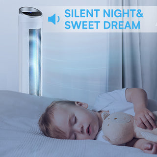 Timer function enables programmable shutdown up to 8 hours, sweet dreams and peaceful sleep can be achieved with the help of our ultra-quiet tower fan.