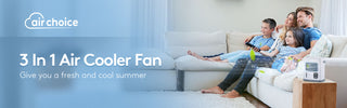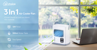 3-in-1 Cooling Air Cooler- Provides three different cooling modes: without water for springlike cool air, with water for cool and moist air, and with icy water for instant cold air.