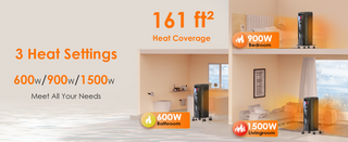 - [Efficient Heating & Multiple Modes] Our 1500W oil-filled radiator heater delivers swift warmth, ideal for large rooms up to 161 square feet. Choose from 3 heating settings (High/1500W, Medium/900W, Low/600W) for customized comfort. With 7 advanced fins, the electric space heater efficiently warms your space quietly and evenly, ensuring a cozy indoor life during the cold winter months.