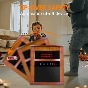 There is a built-in overheat shut-off switch in the electric heater. When an internal component reaches a certain temperature degree at about 105°F which would possibly rise fire, the infrared space heater will automatically shut off.