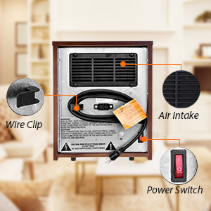 Our infrared space heater will be at your service for more than one winter. A wire clip is thoughtfully equipped at the back of the small infrared heater so that the cord wouldn’t be left unprotected on the floor where it would get abraded and thus raises safety issues when the infrared heater is not used during other seasons.