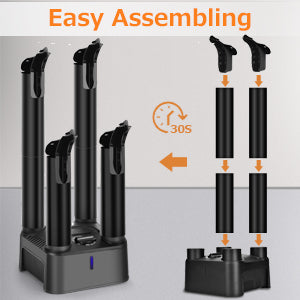Even if you are woman who can't do housework, you can easily assemble boot dryer’s 6 air tubes and 2 brackets in 30 seconds. Plus, one of the finest specialties of this dryer is it could dry 2 pairs of footwear simultaneously.