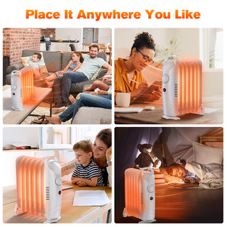 The oil heater saves space in your room because it’s compact and portable, you can put it anywhere you like, such as bedroom, living room, study, office, etc. The radiator heater is equipped with a front carry handle for easy movement, and due to the widening of the bottom, it can be firmly placed on any ground.